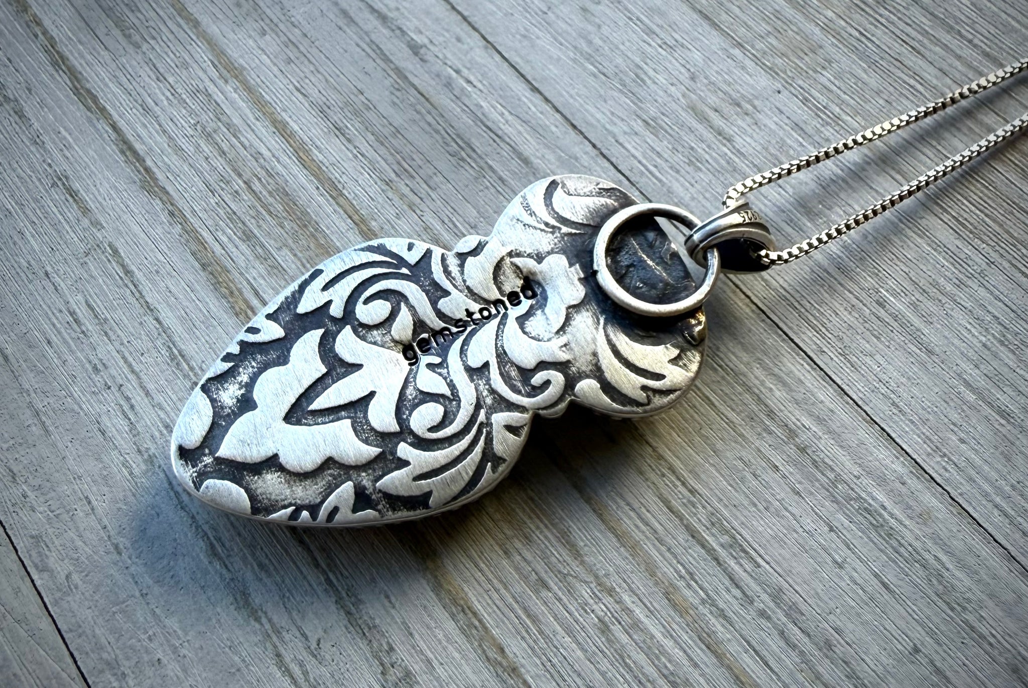 Sterling silver box chains sold separately, and can be found here in my shop in three different lengths: 16”, 18”, and 20”.